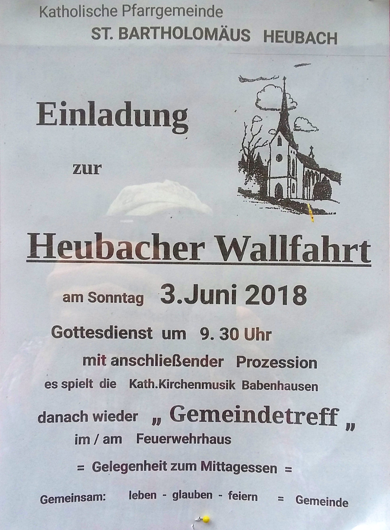 Einladung zur Heubacher Wallfahrt am 03. Juni 2018 von der Katholischen Pfarrgemeide St. Bartholomäus Heubach